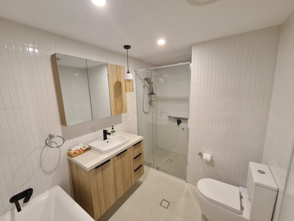 There is a recycle bin located in the labelled cupboard on the right as you leave the apartment and there is a rubbish shoot located on the right immediately next to the elevator both on Level 5, both are just outside the apartment. There are replacement rubbish bags in the cutlery draw for you to use.