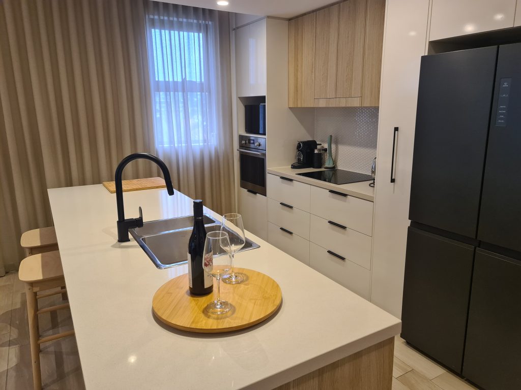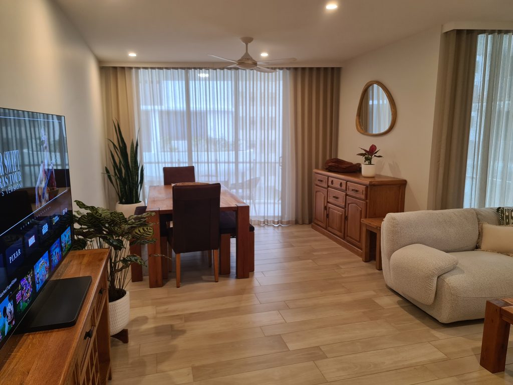 The bedrooms each have queen-size beds and the bathrooms come with hairdryers and toiletries. 511 Cotton Tree has its own laundry complete with washing machine, clothes dryer, iron and ironing board. The kitchen is fully equipped including a dishwasher, microwave, coffee machine and everything you’ll need during your stay.